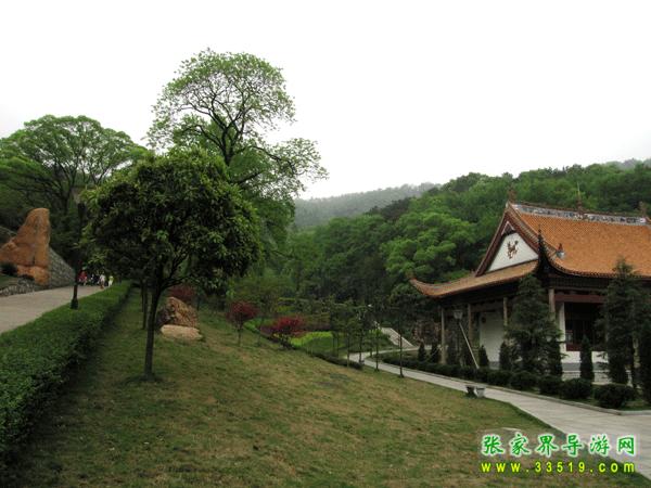 轉(zhuǎn)到祠堂后邊,有一短坡,草色蒼綠,雜有香楓,高不及數(shù)尺。右有一潭,約五尺圓盤,潭水清澈,右岸樟樹(shù)兩棵,挺撥林立,樹(shù)旁瀑布寬約兩尺,高約兩人,水沫飛濺,水擊聲轟轟,如約大壩泄洪。潭之左邊,有一石梯,拾級(jí)而上,就見(jiàn)岳麓山上煙雨蒙蒙,那濃濃的霧水,就像一個(gè)打扮得漂漂亮亮的姑娘披上潔白的婚紗——更加?jì)趁膭?dòng)人。