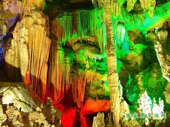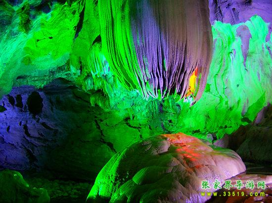 “十里畫廊”里有林海茫茫,古木參天,濃蔭蔽日石呈雪色的“林海雪原”;有聳立的雪山,朵朵雪蓮含苞欲放,一派北國風光的“冰山雪蓮”;有古樹叢生,藤攀葛附,荊棘四布的“西南叢林”;有奇險陡峭,高聳壁立,鬼斧神工的“華山險道”;有溪水潺潺、良田千丘,農家隱約,恰似男耕女織的“躬耕桃源”;有景致逼真的鑿橋、蘇堤、三潭映月等構成的“西湖小景”;有一座溶巖透明、高大雄偉、連天接地、玉柱晶瑩的華麗殿堂,殿堂里矗立著一群可以演奏出七個音符的石壁的“殿堂琴音”;有壁畫8幅,佛像仙人,百態(tài)千姿,栩栩如生的“敦煌石窟”;……