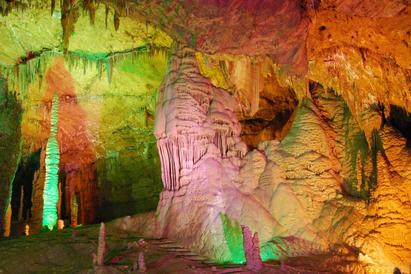 “天堂”精彩紛呈,美不勝收,,有大的景點32處。溶性碳酸鹽巖在漫長的歲月里,變幻出多姿百態(tài),豐韻萬千的眾多造型,為“天堂”造就了美妙絕倫的意境。“南天門”高聳入云,“仙女出浴”百媚千嬌,“御筆天書”維妙維肖,“凌霄殿”虛無縹緲,“玉樹瓊花”繁花似錦,“逍遙宮”如詩如畫,“瑤池”銀波蕩漾,“紫宵宮”三門雄關,“百鳥朝鳳”令人神往,“廣寒宮”寬闊空寂,……“天堂”面積5000多平方米,除了32處大景點,還有浩如星辰,不勝枚數(shù)的眾多小景點。它們一起構成了“天堂”那峰回路轉、光怪陸離,既寬闊幽遠,又雄偉莊嚴,且瑰麗奇妙的無邊美景。
