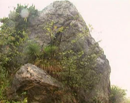 有一天傍晚,王家夫婦正在屋前坪上收稻谷,他倆疼愛的三歲小孩剛從大門里爬出來,就被孽龍一陣風卷了去。忽聽云中大喝一聲:“孽畜,不得作惡!”孽龍?zhí)ь^看見觀音菩薩駕云到此,大吃一驚。但他好久未吃東西了,想先吃了再說,便張開大嘴,將小孩往口中送。觀音菩薩拂塵一指,將孽龍定住,又用手一招,把嚇得半死的小孩拖于懷中,怒斥孽龍道:“你這孽障,作惡多端,如不皈依,修成正果,永不出潭。”說罷,口中念念有詞,拂塵一掃,將孽龍打入潭中,并移來一塊兩丈來高的大石,壓在潭口上,鎮(zhèn)住孽龍。