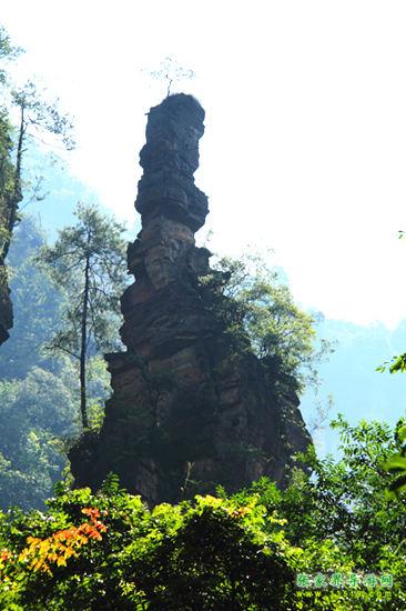古詩云:“蠟燭有心還惜別,替人垂淚到天明”、“何當共剪西窗燭,卻話巴山夜雨時”?,F在流行歌曲唱:“燭光中你的笑容,暖暖的讓我感動……”、“請你再為我點燃一盞燭光,因為我早已迷失了方向……”不論在古人還是現代人看來,蠟燭總是那么多情,燭光總是能點燃那么多的回憶!山腳下這支細小的山峰,很像一只蠟燭,上面長了一棵小樹,很像蠟燭的燈芯,小樹上的樹葉好像蠟燭燃燒時發(fā)出的光焰。倘若這奇峰怪石、花草樹木、鳥獸蟲魚……世間的萬事萬物皆有情,那么這盞燭光,想必是為了他們甜蜜的幽會和浪漫的愛情,或是深切的思念和傷心的離別而點燃的吧?