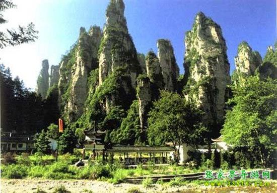 南面龍尾溪,北面鴛鴦溪,西面金鞭溪,三水東流匯成索溪,四條溪水,四個山門,故稱此處為水繞四門。水繞四門又名止馬塔,相傳漢代張良歸隱山林,曾來到這里,他的馬因迷戀這山環(huán)水繞、如詩如畫的風景,走到這兒硬是不走了。據說西北角香爐巖下有張良墓(有待考證),有人寫詩應合:“踏遍青山尋古人,四門水繞得佳城。香爐巖下舊土墓,漢代留侯張良墳。”相傳這兒還曾是明朝初年土司王向大坤(自命為天子,人稱向王天子)揭竿起義的地方,因此,那里有一支山峰被命名為萬歲牌,另外一大片山峰被稱作四十八大將軍巖——真可謂是“武陵多奇景,誰與巧安排?千年萬載留與時人任剪裁!”