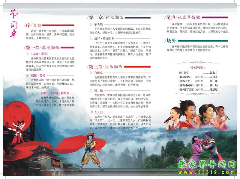 三寶一絕:三寶是指張家界地區(qū)知名的三個(gè)人文民俗景區(qū)【土家風(fēng)情園】,【老院子】,【袁家寨子】 一絕是指【魅力湘西民俗晚會(huì)】