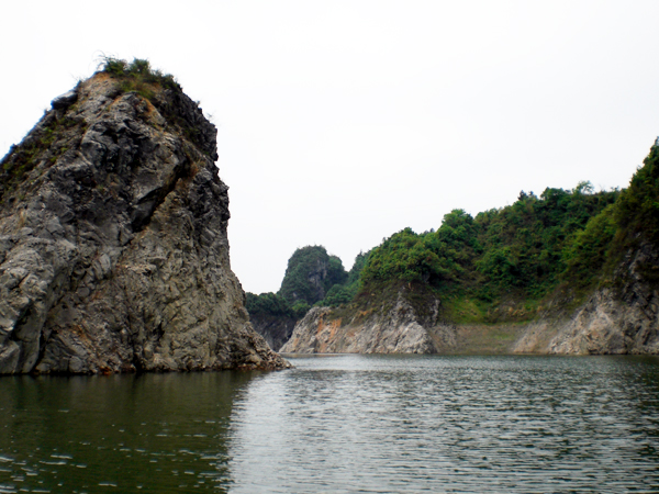 湖南省慈利縣趙家埡水庫始建于1972年,是一座以抽水蓄能發(fā)電為主,兼具蓄洪防洪、抗旱灌溉、營林旅游、水產養(yǎng)殖等多功能于一體的中型水利水電骨干工程,水庫本身集雨面積33.5km2,外引集雨面積24Km2。水庫樞紐大壩為粘土斜墻堆石壩,壩底高程為500m,壩高46m,由于水庫屬封堵天然溶洞而建,大壩潛于水下,趙家埡水庫因此被稱為我國第一座“無壩”水庫。