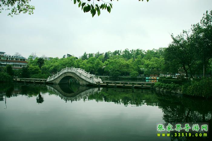 岳屏山下的原江西會(huì)館舊址,改建成為博物館,內(nèi)有王夫子專館和古物商店,龍年龍展,更是令人矚目。和博物館為鄰的是花圃,四時(shí)八節(jié),有花卉幽蘭供人觀賞。同博物館只有一條馬路之隔的人工湖,是在大灣塘的基礎(chǔ)上疏鑿而成的,有一潭名云水池,繞池有一條環(huán)行小路,北有湖心亭,亭和湖心島之間有仿頤和園玉帶橋相聯(lián),人們可以在湖島上戲游和小憩。過曲橋、繞回廊,便是類似西湖平湖秋月形的亭榭,上有吊腳茶亭,亭上有楹聯(lián):"云岫蒼??叭?a class="insidelink" href="http://m.19r5.com/Scenic/ZJJJQ/09291321189.html" title="畫">畫,水波蕩漾自成文.此聯(lián)深入淺出,有雅俗共賞之妙。"
