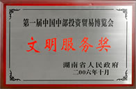 優(yōu)秀展臺獎 中國湖南旅游博覽會組委會 |