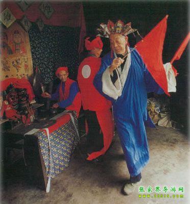 儺戲在湘西土家族地區(qū)也稱儺堂戲、儺神戲,它與土家族原始巫教、巫術(shù)的關(guān)系極為密切。土家族先民信奉的神有儺神、八部大神、土地神等,作為一種宗教活動(dòng),這種原始信仰與社會(huì)生產(chǎn)活動(dòng)、文娛活動(dòng)及民族習(xí)俗是融為一體的,因此儺戲最先的“沖儺還原”帶有明顯迷信色彩,土家族群眾中有“一儺沖百鬼,一愿了千神”的說(shuō)法,湘西土家族人干脆叫它為“神戲”。湘西土家族儺戲的發(fā)展過(guò)程大體是儺、儺舞、儺儀然后才產(chǎn)生儺戲。儺舞源于久遠(yuǎn)的蒙昧?xí)r期,土家先民們?cè)谕笞匀蛔鞫窢?zhēng)、同毒蟲(chóng)猛獸作斗爭(zhēng),便產(chǎn)生了化裝護(hù)面、在鼓樂(lè)聲中奔騰呼號(hào)、沖殺跳躍的原始儺舞,其所模擬的鳥(niǎo)雀舞、猿猴舞、熊舞等頗為壯觀。儺舞與儺這種驅(qū)鬼消災(zāi)的祭祀儀式結(jié)合后,增加了祈求人獸平安、五谷豐登、緬懷祖先、勸人去惡從善、以及傳播生產(chǎn)知識(shí)等內(nèi)容,這就逐漸形成了兼?zhèn)潢U弘教義及娛樂(lè)性質(zhì)的祭祀風(fēng)俗歌舞。[2]土家族儺戲就是在此基礎(chǔ)上發(fā)展起來(lái)的。部分土家族學(xué)者認(rèn)為土家族儺戲的遠(yuǎn)源可以追溯到戰(zhàn)國(guó)時(shí)代的《九歌》,《九歌》是土家族儺戲的雛形,他們的依據(jù)是當(dāng)時(shí)楚國(guó)的沅湘流域,人們“信巫鬼、重淫祀”(《漢書·地理志》),從而使得“陰陽(yáng)人鬼之間,又或不能無(wú)褻慢淫荒之雜”(宋代朱熹《楚辭集注》)。屈原正是加工整理了這一類“鄙陋”之詞,才創(chuàng)作出《九歌》、《天問(wèn)》等名篇。也有部分學(xué)者不贊同這種論點(diǎn),他們認(rèn)為土家族儺在宋代還停留在儺祭和儺舞階段,最遲到明代,土家族儺才發(fā)展成為儺戲[3]。嘉靖《常德府志》記載:“歲除,歲將盡數(shù)日,鄉(xiāng)村多用巫師,朱裳鬼面,鑼鼓喧舞竟夜,名曰還儺。”文中未點(diǎn)明“儺戲”二字,但卻使用了“還儺”一詞,這與今天民間對(duì)儺戲的稱呼相似。又據(jù)清乾隆《永順縣志》載:“永俗酬神,必延辰郡巫師唱演儺戲,……至晚,演儺戲。敲鑼擊鼓,人各紙面一,有女裝者,曰孟姜女;男扮者,曰范七郎。”在土家族儺戲中,孟姜女傳說(shuō)故事占著非常重要的地位。在湘西土家族地區(qū),儺戲一般有二十四正戲,即二十四戲神。每次儺儀結(jié)束時(shí),巫師要用香火在黃裱紙上燒二十四個(gè)洞,以表示奠祭二十四戲神。民間有諺語(yǔ):“儺神菩薩不識(shí)字,只要二十四個(gè)圈圈滿。”在二十四儺神中,被稱為勾愿神的姜女、范郎是還儺愿時(shí)非常重要的兩位神靈。在儺戲中,《孟姜女》是整場(chǎng)的高潮,平時(shí),儺戲唱完后,由沒(méi)下裝的孟姜女、范郎去向主人家及觀眾“拜臺(tái)”,以示“了愿”。清代中期以后,儺戲吸取了花燈、陽(yáng)戲、高腔等其他地方戲劇劇種的唱腔和劇目,逐漸變得日益成熟。我們仔細(xì)查看了全國(guó)371個(gè)劇種,發(fā)現(xiàn)儺戲、花燈戲有著相同的班社,也就是說(shuō)一個(gè)演出班社可以演出儺戲、花燈戲兩個(gè)劇種。這段時(shí)期,儺戲已作為獨(dú)立戲劇劇種參加演出。由于儺戲是由巫儺法事演變而成的戲劇形式,經(jīng)歷著巫儺法事(驅(qū)鬼祭祀)、儺壇上戲和儺堂正戲的發(fā)展過(guò)程。