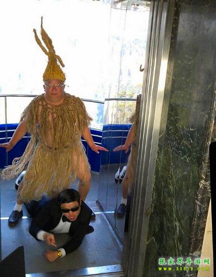2012年10月31日,張家界市旅游局副局長、正處級調研員鄭亞平在張家界版《江南style》MV中客串“稻草鳥叔”,在劇中表演得入木三分。這位身著稻草的長者跨在一位年輕“帥哥”身上跳舞,動作之滑稽,表情之搞笑,可謂“史上最鳥的旅游官員”。鄭亞平坦言:“我年近60,在退休之前為張家界的旅游發(fā)展多奉獻自己,退休后我才不會遺憾!”