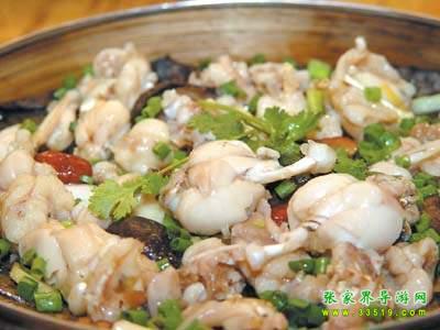 華南湍蛙,又名石蛙,當(dāng)?shù)厣矫袼追Q“梆梆”,屬兩棲綱蛙科動(dòng)物,它是捕捉水蛇的能手。華南湍蛙平常生活在溪流石潭中,有時(shí)晚上上岸活動(dòng)。它與斑魚交配產(chǎn)子。華南湍蛙無論白天或黑夜,都能發(fā)出“梆梆”的叫聲,故俗名“梆梆”。華南湍蛙的肉十分細(xì)嫩鮮美,尤其燒湯,比雞湯還香甜。它營養(yǎng)豐富,是名貴食品之一,也是待客的上品。