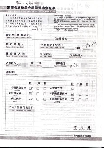 2011年5月1號(hào)楊先生一行2人旅游質(zhì)量反饋